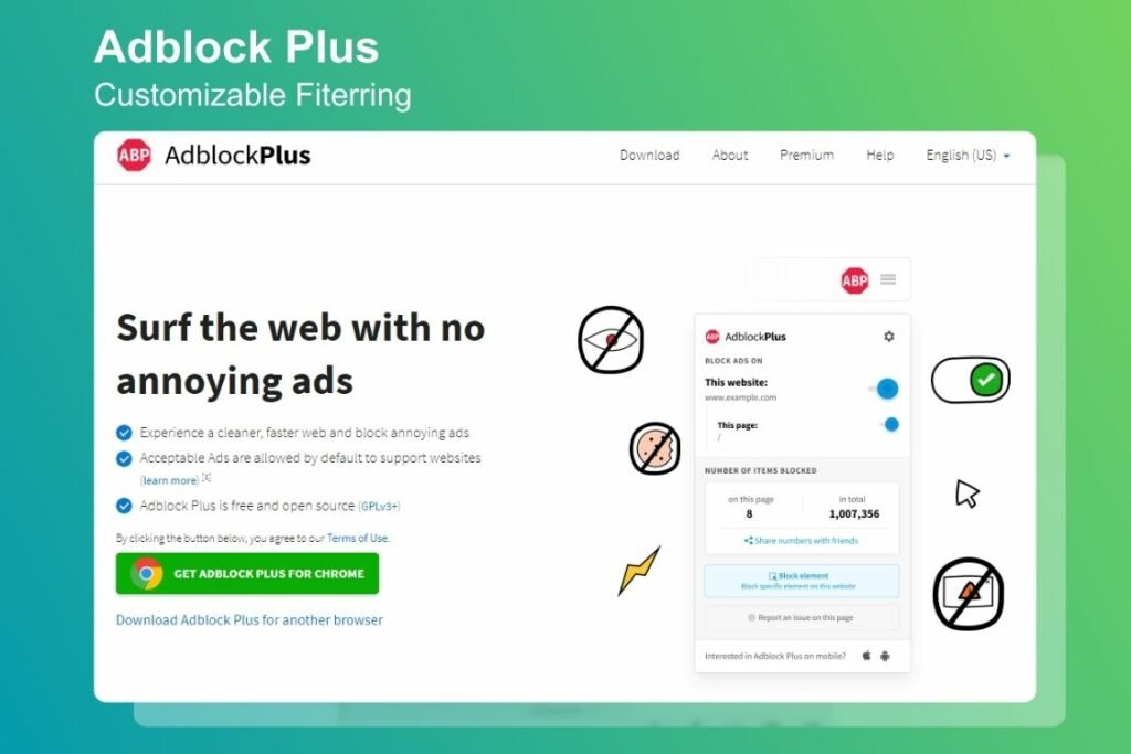 - AdBlock Plus: Offers customizable filtering to remove annoying ads.