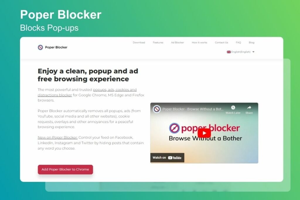 Poper Blocker is a powerful ad blocker that automatically removes all ad pop-ups, banners, and overlays for a smooth online experience. The extension is designed to be resource-efficient and doesn’t impact your device’s performance. It also allows you to whitelist specific websites or domains. You can download Poper Blocker for free. It works on a wide range of browsers, including Chrome, Firefox, Safari, and Opera.