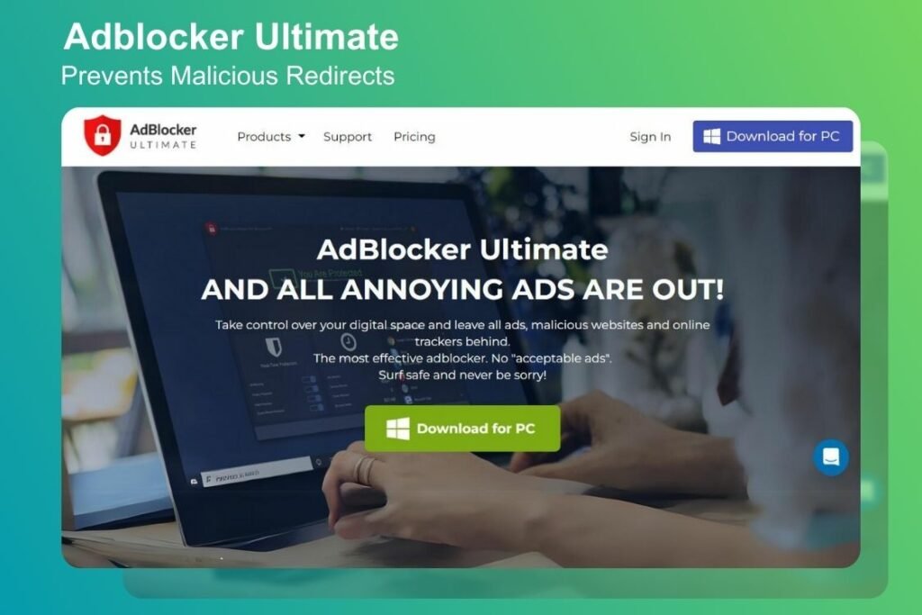- Adblocker Ultimate: Removes ads and prevents malicious redirects from websites.