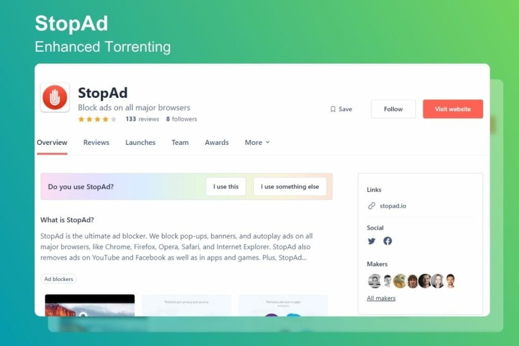 - StopAd: A cross-platform ad blocker that enhances torrenting security across devices.